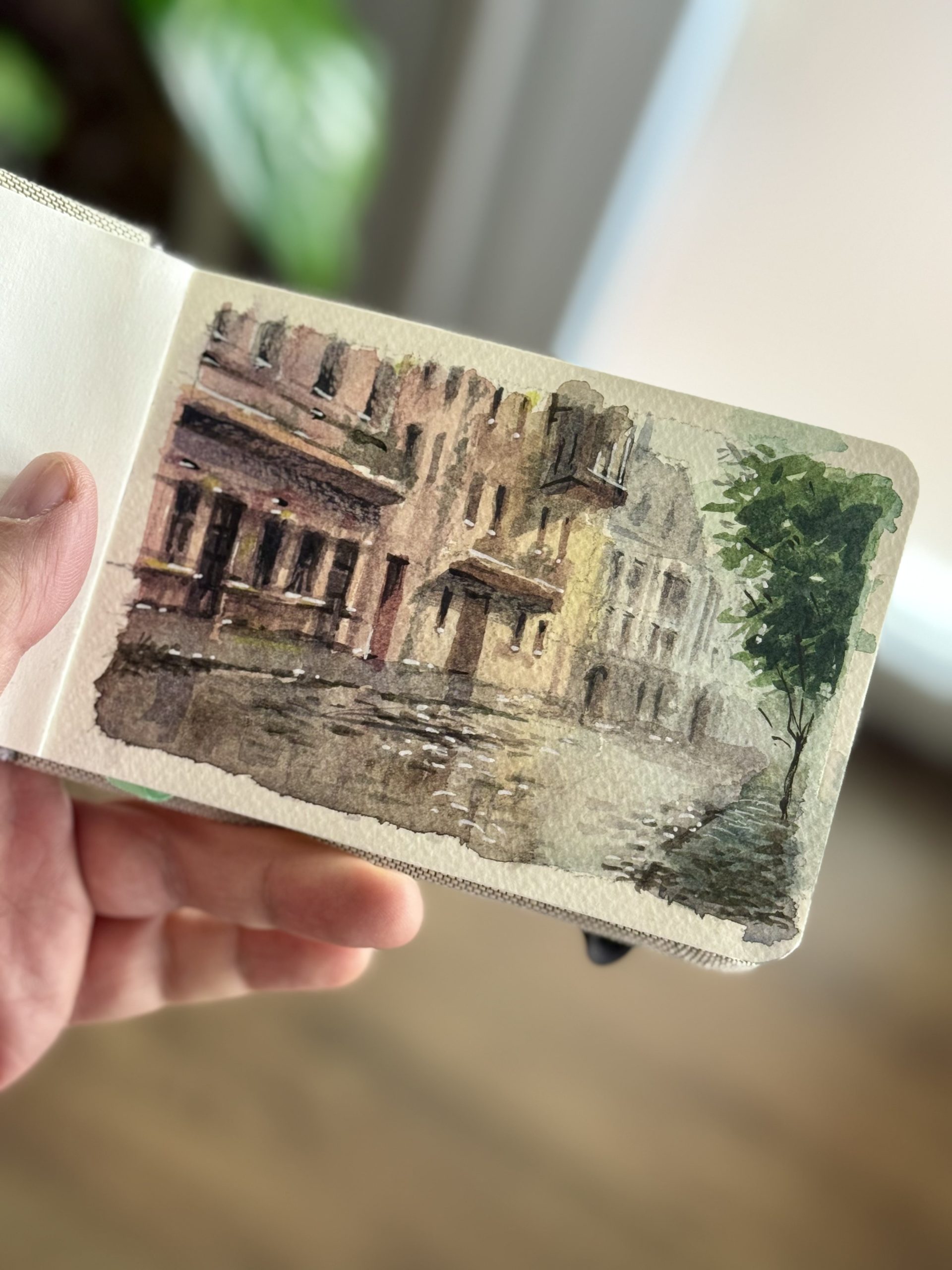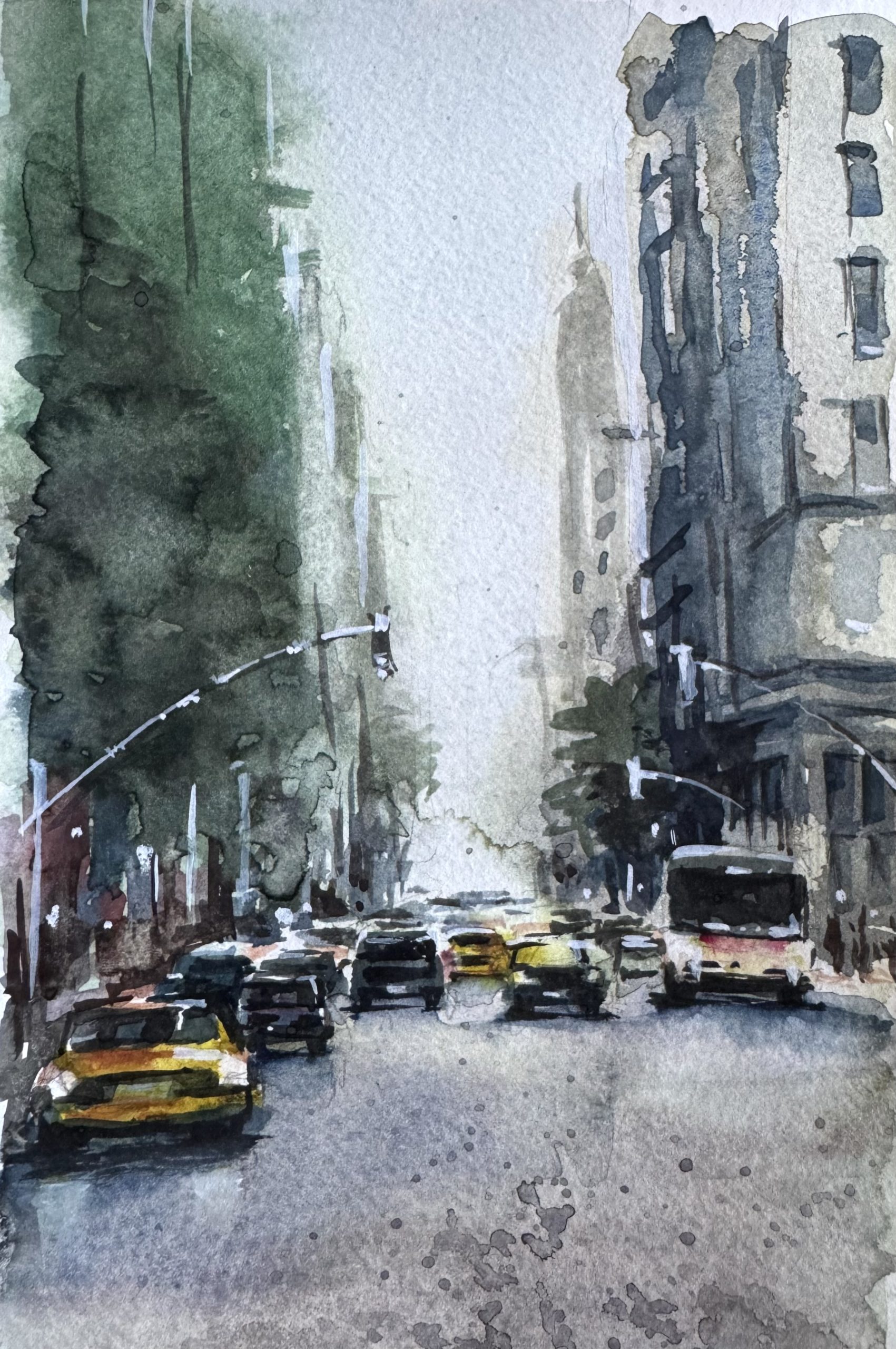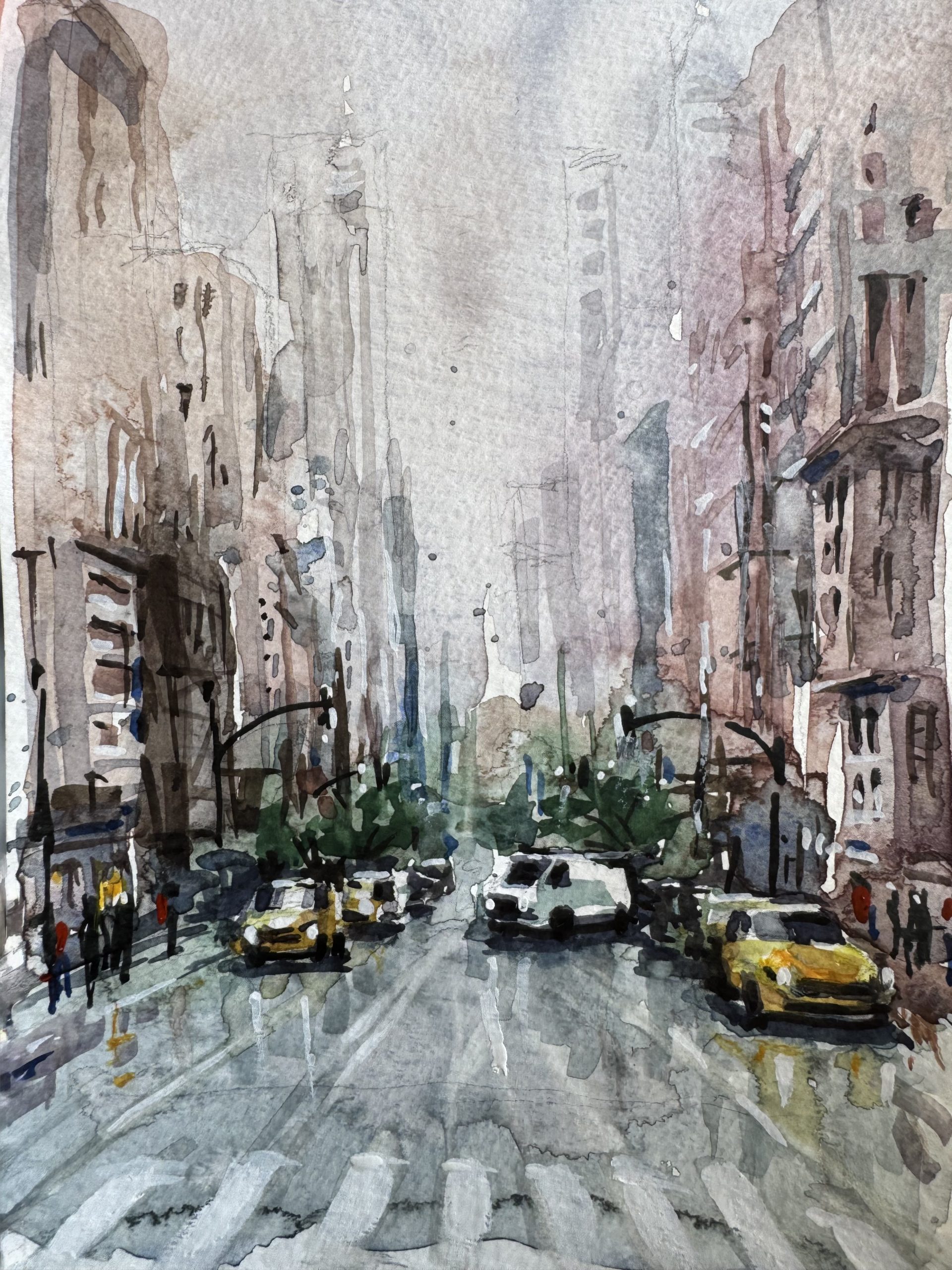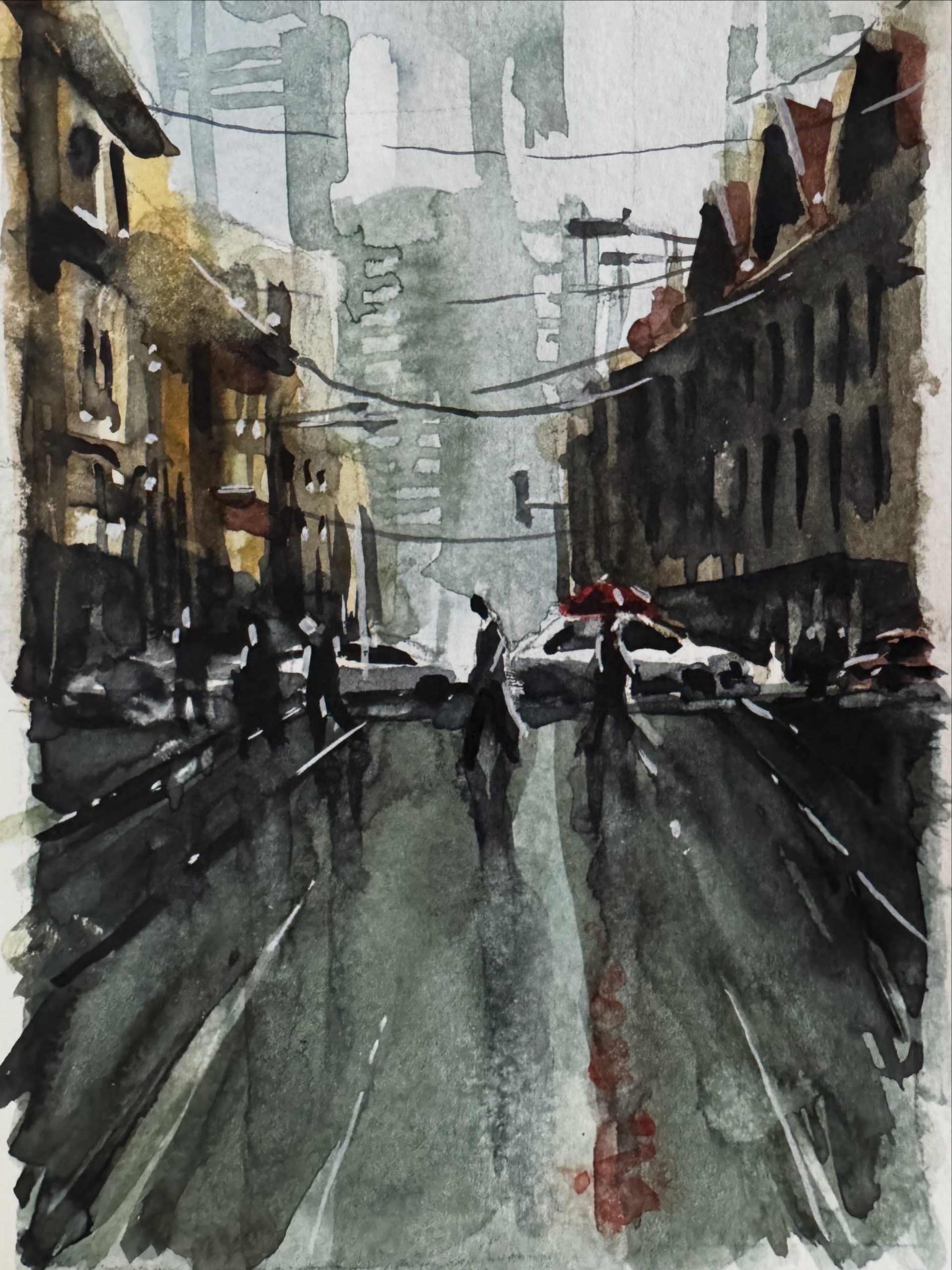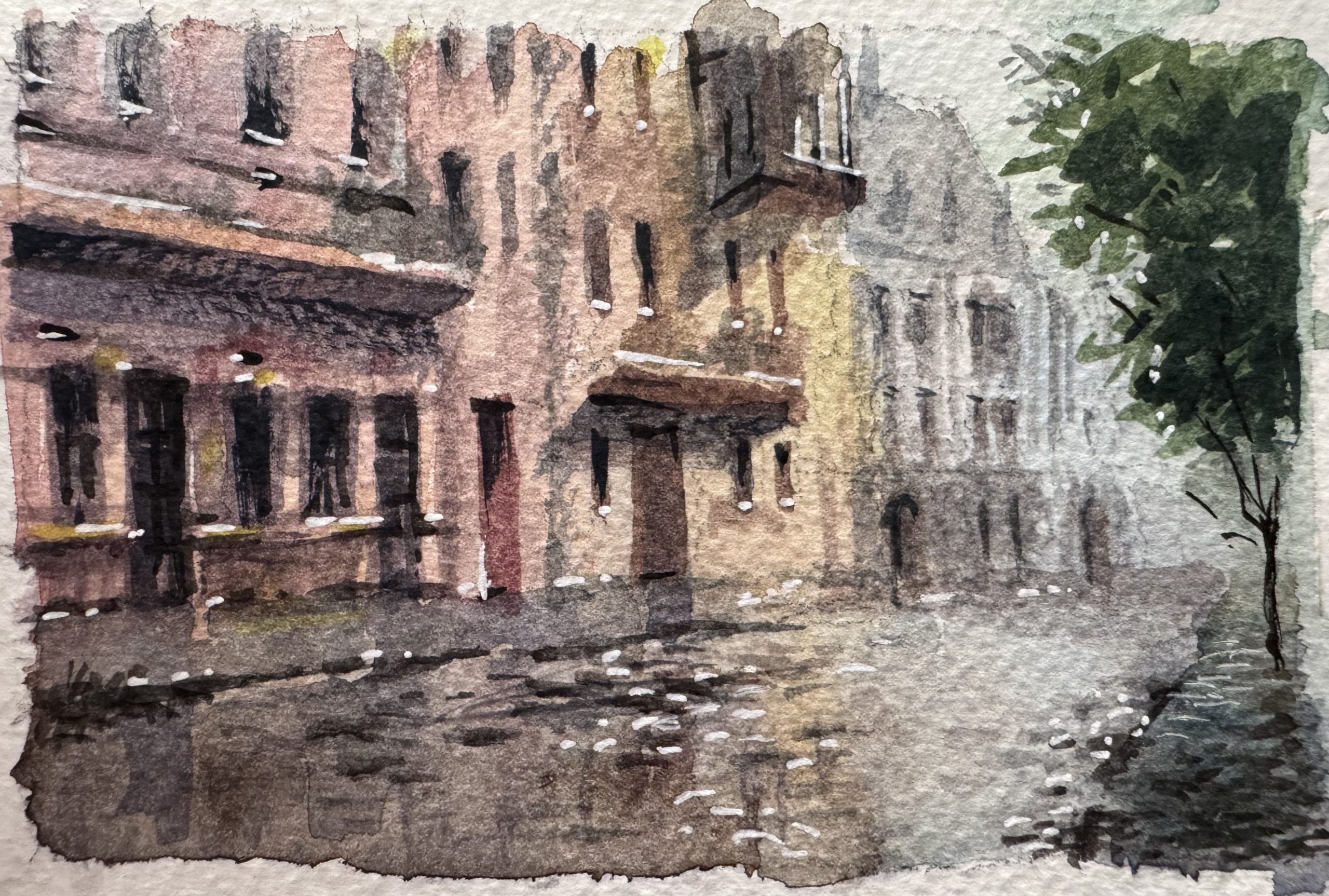 The Cities watercolor gallery features expressive paintings of urban landscapes, capturing streets, architecture, and city atmosphere. Using loose brushstrokes and soft watercolor tones, the artworks highlight light, perspective, and the vibrant character of city life. 🎨